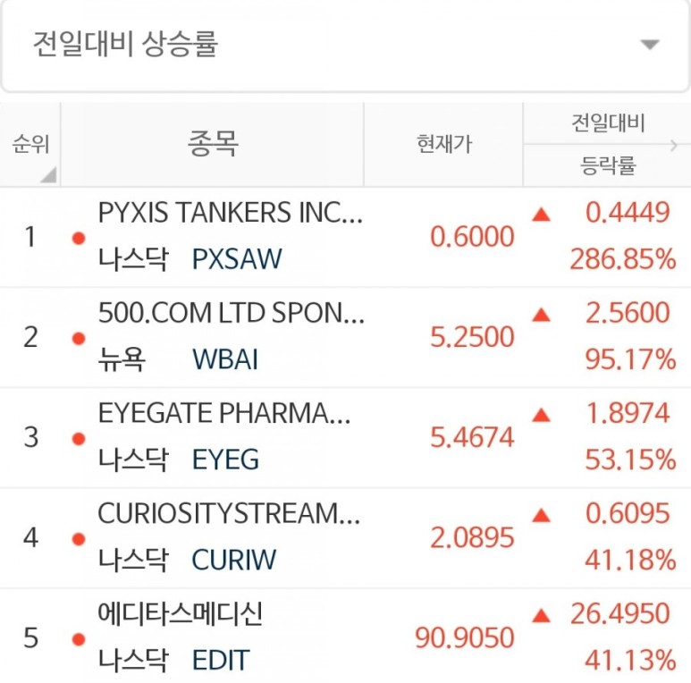 안녕하세요. 옆집 세라입니다. 오늘의 3번째 전일대비 상승율 1위는 Pyxis Tankers Inc 입니다.