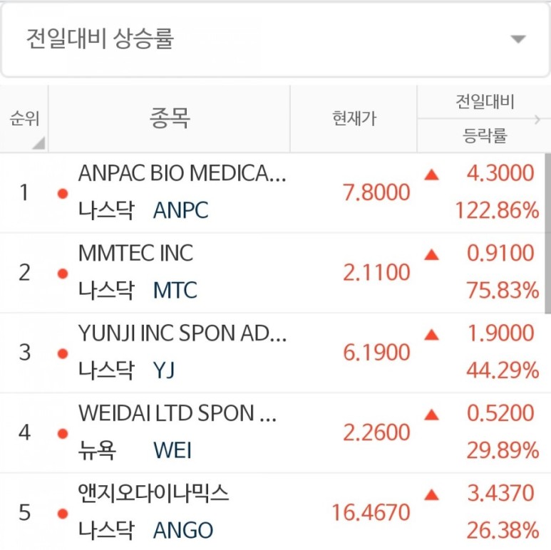 안녕하세요. 옆집 세라입니다. 오늘의 전일대비 상승율 1위는