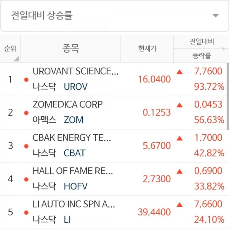 안녕하세요. 옆집 세라입니다. 오늘의 전일대비 상승율 1위는 Urovant Sciences Ltd가 되겠습니다.
