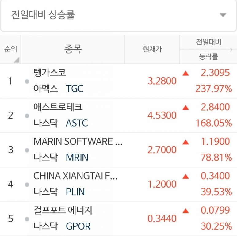 안녕하세요. 옆집 세라입니다. 오늘의 전일대비 상승율 1위는 텡가스코가 되겠습니다.(10/21 10:30pm 현재)