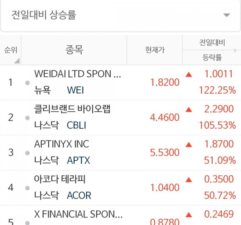 하... 오늘 전일대비 상승율 도대체 몇번 바뀌는 거니... 3번째 1위 입니다. 중국 경제가 회복세를 보이기 시작해서 일까요? 요즘 중국기업이 상승률 1위에서 자주 보이는 군요.