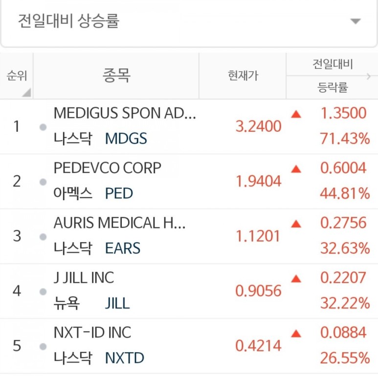 그 새 1위가 바뀌어버렸네요. Medigus Spon ads each rep 50 ord shs (MDGS) 에 대한 기업정보입니다.