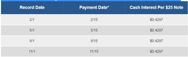 다음 일정은 미결제 Medley LLC 어음에 대한이자 지급과 관련된 주요 날짜를 보여줍니다