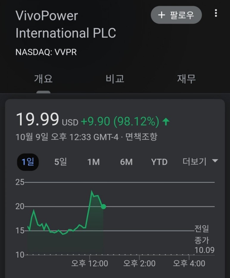 오늘의 전일대비 상승율 2위는 92.22%를 기록했습니다. (10/10 한국시간 2AM 기준)