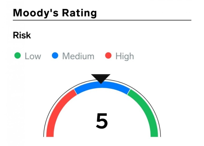 무디의 Rating이라고 해서 해당 주식의 리스크가 얼마나 되는지 평가하는 항목. 여기선 1부터 10으로 위험도를 매기는데 우선 리스크는 미듐.