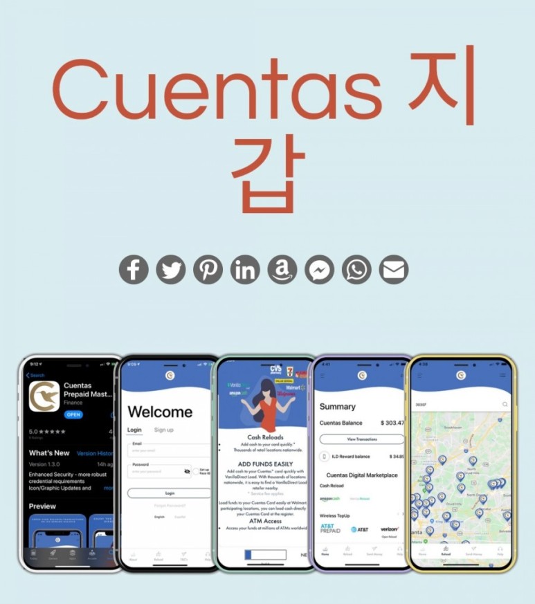 Prepaid Debit Card CUENTAS MasterCard for Hispanics and immigrants in the USA. You only need the ID of your country. Download CUENTAS App in AppStore and GooglePlay to your phone. We are the best way to keep your cuentas. Do not use CASH, it is time to use CUENTAS Mastercard and staying home avoids ...