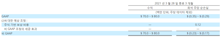 - 희석 주당 GAAP 순손실은 $ (0.35) ~ $ (0.29)이고, 희석 주당 GAAP 순손실은 $ (0.23) ~ $ (0.17)입니다.