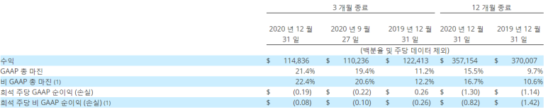 - 희석 주당 2020 GAAP 순손실 $ (1.30); 희석 주당 비 GAAP 순손실 $ (0.82).