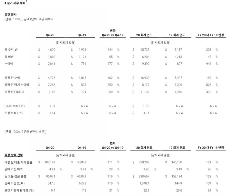 로켓 회사는 폭발적인 성장을 경험하고 4 분기 매출은 전년 대비 144 % 증가한 47 억 달러로, 회사는 보통주 클래스 A 주당 $ 1.11의 특별 배당금을 발표