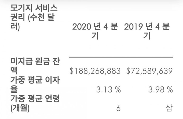 모기지 서비스 권리의 미지급 원금 잔액이 419 분기에 726 억 달러에서 420 분기에 1,883 억 달러로 증가했습니다.