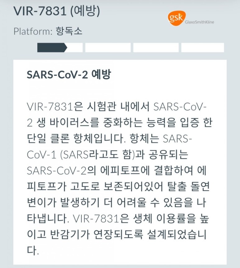 Dr. 할 배런, 최고 과학 책임자이자 R & D 사장 인 GSK는 다음과 같이 말했습니다 . VIR-7831을 가능한 한 빨리 환자에게 제공하고 다른 환경에서 그 잠재력을 더욱 탐구 할 수 있기를 기대합니다.”
