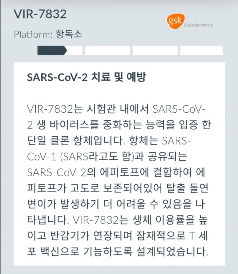 또한, VIR-7831과 함께 VIR-7832는 경증에서 중등도의 COVID-19를 앓고있는 성인을 대상으로 한 1b / 2a 상 국가 보건 서비스 지원 AGILE 시험에서 평가됩니다. VIR-7832는 잠재적 인 COVID-19 치료제로 조사 될 Vir-GSK 협력의 두 번째 단일 클론 항체입니다.