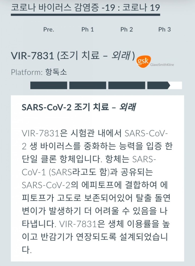Vir Biotechnology와 GSK, VIR-7831, COVID-19 성인 조기 치료시 입원 및 사망 위험 감소