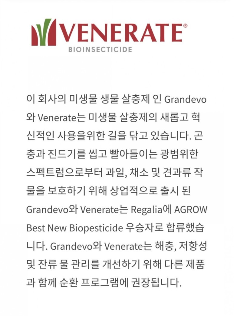 Marrone Bio Innovations, Inc. (NASDAQ : MBII) (MBI)는 해충 관리 및 식물 건강을위한 생물학적 제품의 발견, 개발 및 홍보를 통해보다 지속 가능한 세상으로의 움직임을 이끌고 있습니다. 당사의 효과적이고 환경 적으로 책임있는 솔루션은 고객이 해충을 제어하고 식물 건강을 개선하며 작물 수확량을 늘리면서보다 지속 가능한 방식으로 운영 할 수 있도록 지원합니다. 현재 상용 제품에는 Regalia® Biofungicide, Stargus® Biofungicide, Amplitude® Biofungicide, Grandevo® Bioinsecticide, Venerate® Bioinsecticide, Majestene® Bionematicide 및 Haven® Sun Protectant가 포함됩니다. 또한 MBI는 수상 시장을위한 침습성 홍합 용 Zequanox®도 판매합니다. 이 회사는 독점적 발견 프로세스, 신속한 개발 플랫폼, 강력한 해충 관리 및 식물 건강 제품 후보 파이프 라인을 보유하고 있습니다. Marrone Bio Innovations에서Regalia, Stargus 및 Amplitude는 곰팡이, 흰 곰팡이 및 Botrytis와 같은 곰팡이 및 세균성 질병을 방제하고 광범위한 특산품 및 행 작물 (예 : 옥수수 및 대두)의 수확량과 품질을 높이는 데 사용됩니다. 이 회사의 생물 살충제 인 Grandevo와 Venerate는 과일, 견과류 및 채소에서 곤충과 진드기를 빨고 씹는 범위를 제어합니다.. Majestene Bionematicide는 선충 개체 수를 줄이고 다양한 특산품 및 줄 뿌리 작물에서 수확량과 품질을 높입니다. Haven은 작물의 태양과 물 스트레스를 줄이고 수확량과 품질을 높입니다. MBI는 파이프 및 개방 수역에서 침습성 얼룩말 및 콰가 홍합을 선택적으로 제어하는 업계 최초의 바이오 기반 제품인 Zequanox로 물 시장에 진출했습니다.