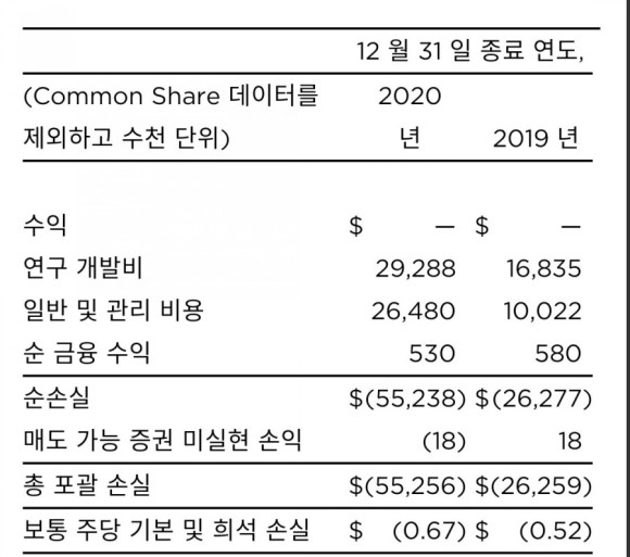 2020 년과 2019 년 12 월 31 일로 종료 된 연도의 연구 개발 ( "R & D") 비용은 다음과 같습니다.
