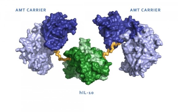 AMT-101은 항 염증성 사이토 카인 인 인간 인터루킨 10 (hIL-10)의 새로운 GI 선택적 연구용 경구 재조합 생물학적 융합 단백질로, 염증성 장 질환 및 전신 염증 징후의 치료를 위해 개발 중입니다.