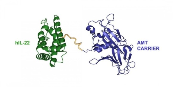 다른 파이프 라인 분자와 유사하게 AMT-126은 장 내에서 자연적인 생물학적 전달 메커니즘의 힘을 활용하여 장 상피 장벽을 통과하고 상피 장벽의 기저 측 표면에서 IL-22 수용체와 직접 상호 작용할 수 있도록 설계되었습니다. 세포. 이것은 바로 IL-22가 장벽 결함을 복구하기 위해 활동을 수행하는 행동의 장소입니다.