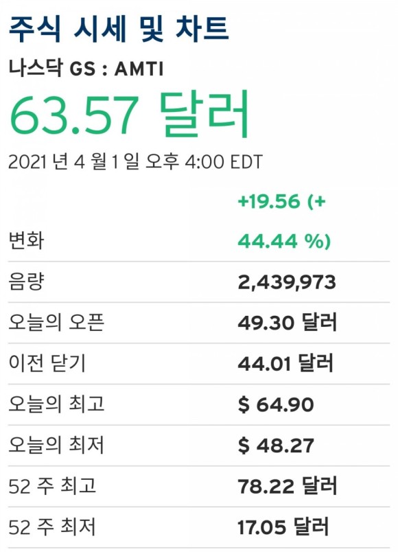APPLIED MOLECULAR TRANSPORT, 보통주 공모 가격 발표
